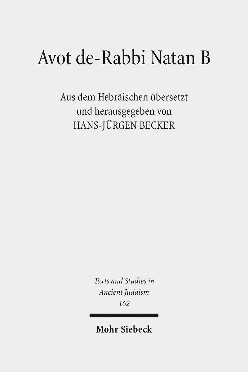 Nach Erschließung der hebräischen Textbasis durch die Edition der Geniza-Fragmente (2003) und die Synopse der Handschriften beider Versionen von Avot de-Rabbi Natan (2006) legt Hans-Jürgen Becker mit diesem Band eine Übersetzung von Version B vor, die auf dem aktuellen Stand der Textforschung diese für Geschichtsdeutung und Weisheit des antik-rabbinischen Judentums zentrale Quelle auch den Interessierten angrenzender Disziplinen zugänglich macht. Grundlage der Übersetzung ist die älteste und vollständigste erhaltene Handschrift MS Parma 2785 (= de Rossi 327, Spanien 1289), ergänzt durch MS Vatikan 303 (Italien, 15. Jh.). Übersetzungsrelevante Varianten sämtlicher Textzeugen werden anmerkungsweise oder durch synoptische Darstellung dokumentiert. Die Übersetzung ist um größtmögliche Wörtlichkeit bemüht - schwierige Stellen werden sprachlich nicht geglättet. Die Anmerkungen geben Hinweise zum möglichen Textverständnis, ohne der Interpretation vorzugreifen.
