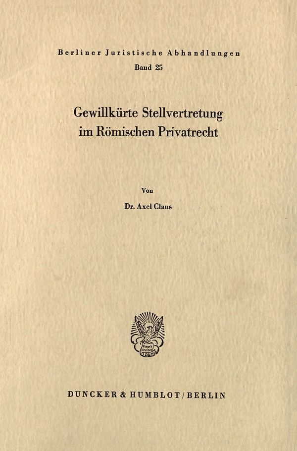 Gewillkürte Stellvertretung im Römischen Privatrecht.