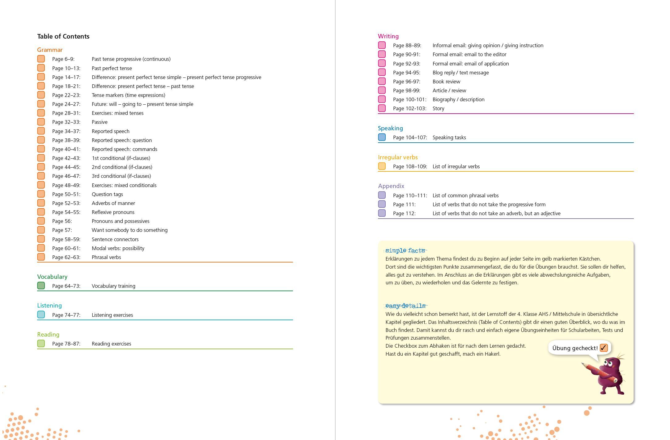 Englisch 4. Klasse AHS/Mittelschule Training der Grundfertigkeiten: Lesen, Hören, Sprechen, Schreiben Vokabel-Training und Irregular verbs Listening Exercises von Native Speakern gesprochen, Tapescripts im Lösungsheft Schwerpunkte Grammatik : tenses (past ten...