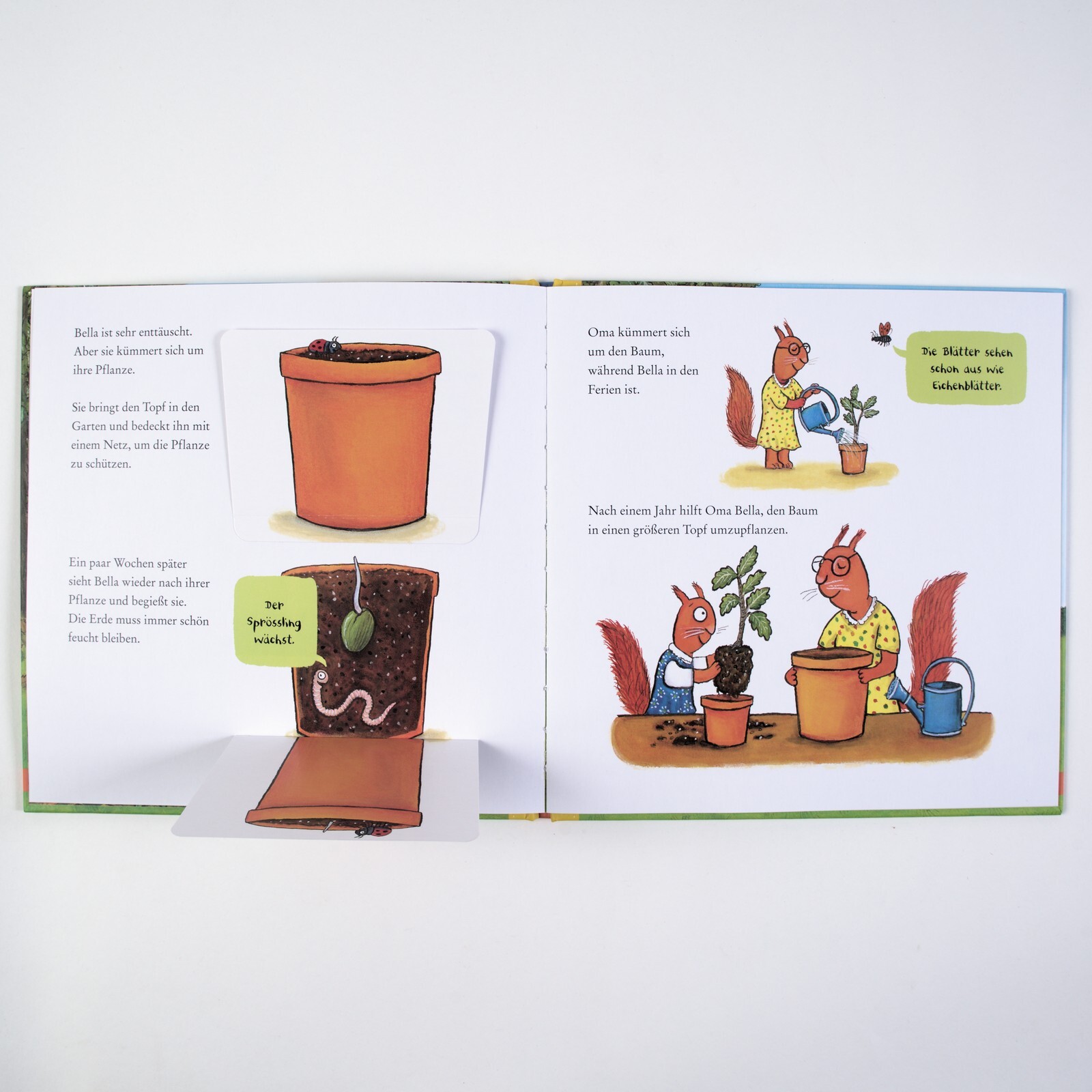 Bella, das kleine Eichhörnchen, pflanzt eine Eichel in den Topf: Sie braucht viel Geduld, bis daraus ein Setzling wird, den sie umtopfen und aussetzen kann. Sie kann es kaum erwarten, bis aus der Eichel ein Baum wird ... Ein tolles Pflanzen-Bilderbuch von eine...