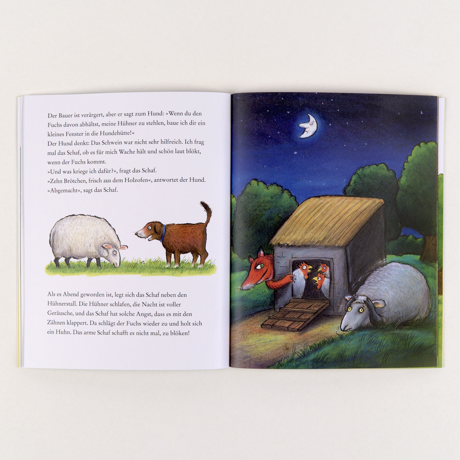 Auf dem Bauernhof ist der Fuchs los, Nacht für Nacht stiehlt er ein weiteres Huhn! Der treue Hund legt sich auf die Lauer, doch auch mit tatkräftiger Unterstützung bekommt er ihn nicht zu fassen. Zum Glück weiß die listige Katze Rat mit Hilfe der Mäuse gelingt...