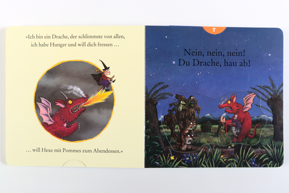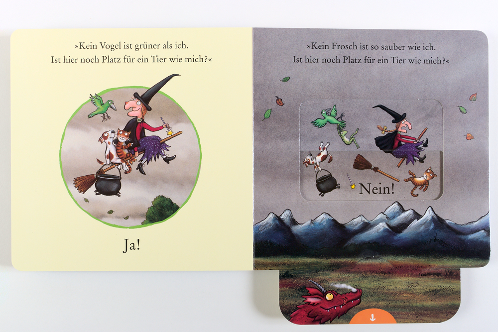 Die berühmte Geschichte von Hund und Katz als Pappbilderbuch zum Spielen: Hat der Hund noch Platz auf dem Hexenbesen? Ja, er kommt mit! Ist noch Platz für den Frosch? Ja! Und der Vogel? Ja, und los geht's juhu! Und weil zusammen können sie die Hexe vor dem Dra...