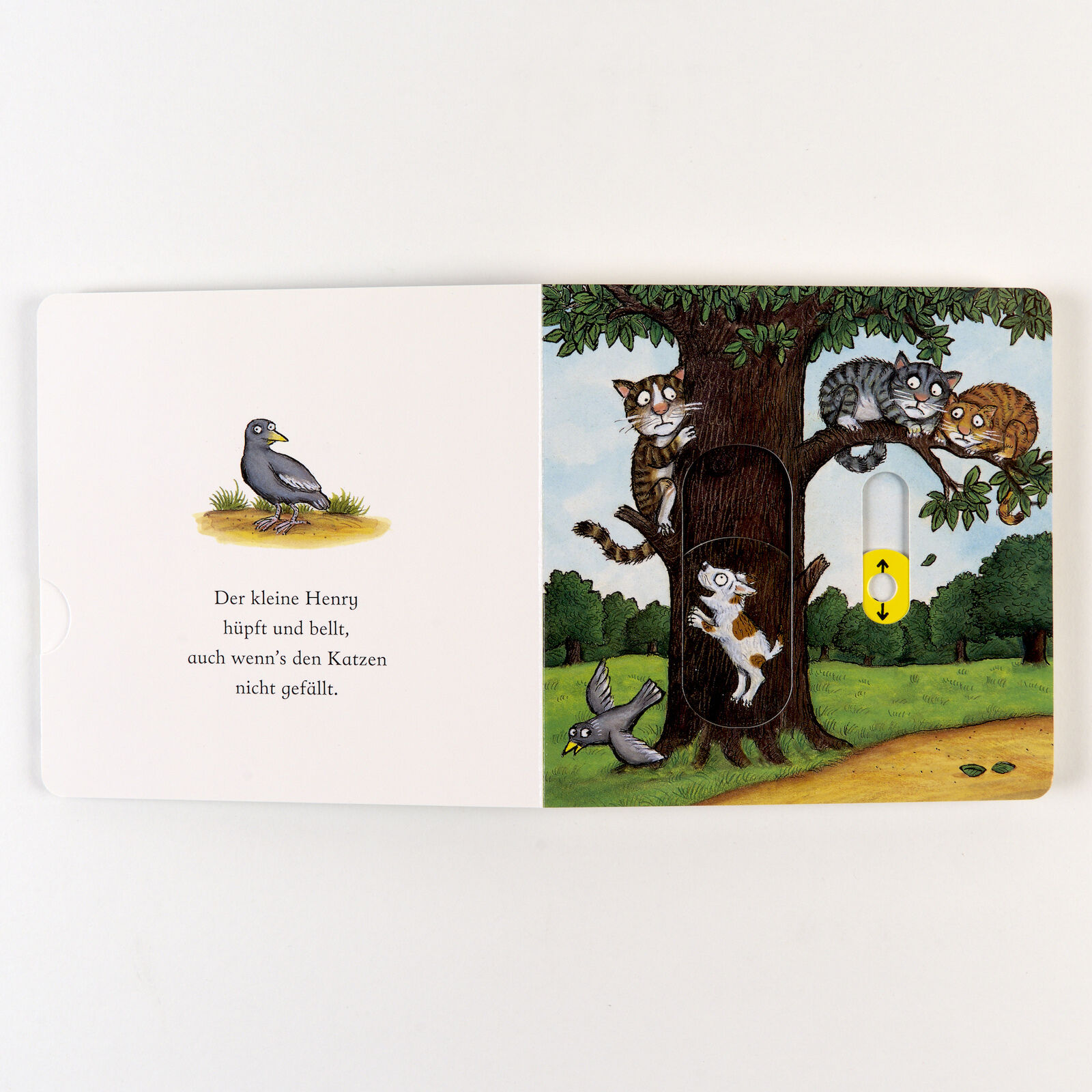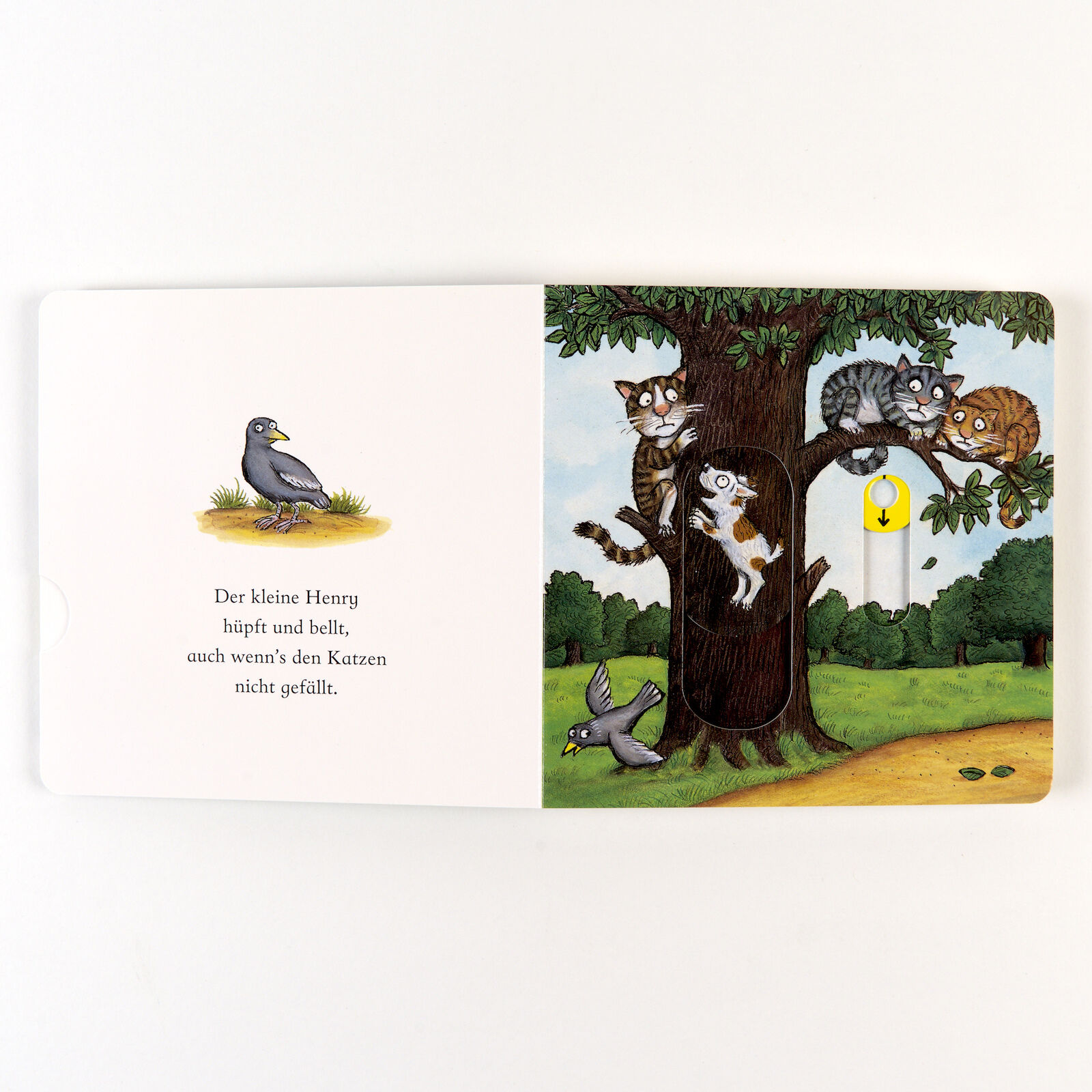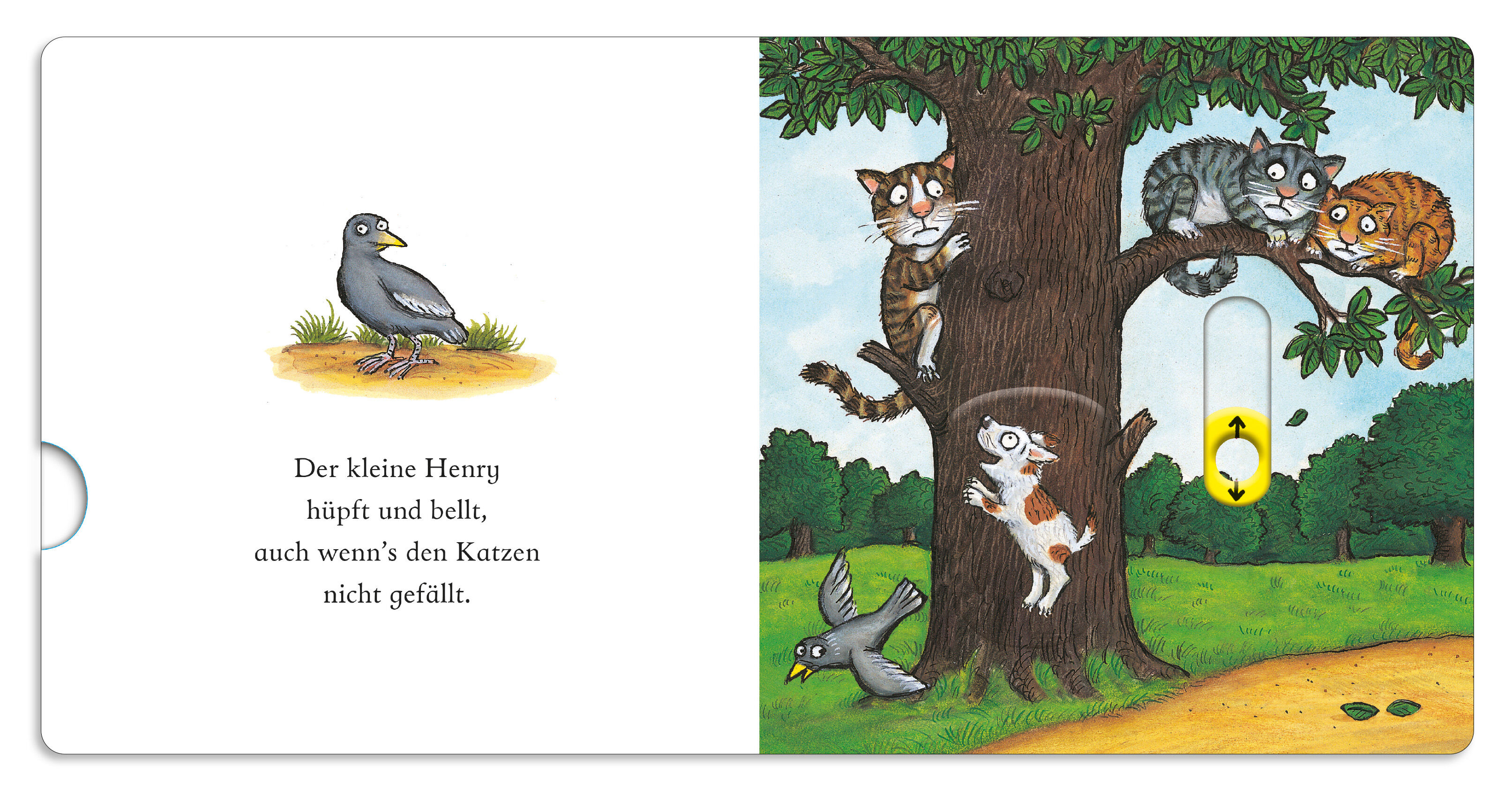Henry, das Hündchen wühlt, gräbt und bellt, selbst wenn's den Katzen nicht gefällt! Eine vergnügliches Pappbilderbuch von dem Illustrator des Grüffelo mit einfachen und lustigen Versen, in denen kleine Kinder mit dem kleinen Hund bellen können. Mit je vier Ele...