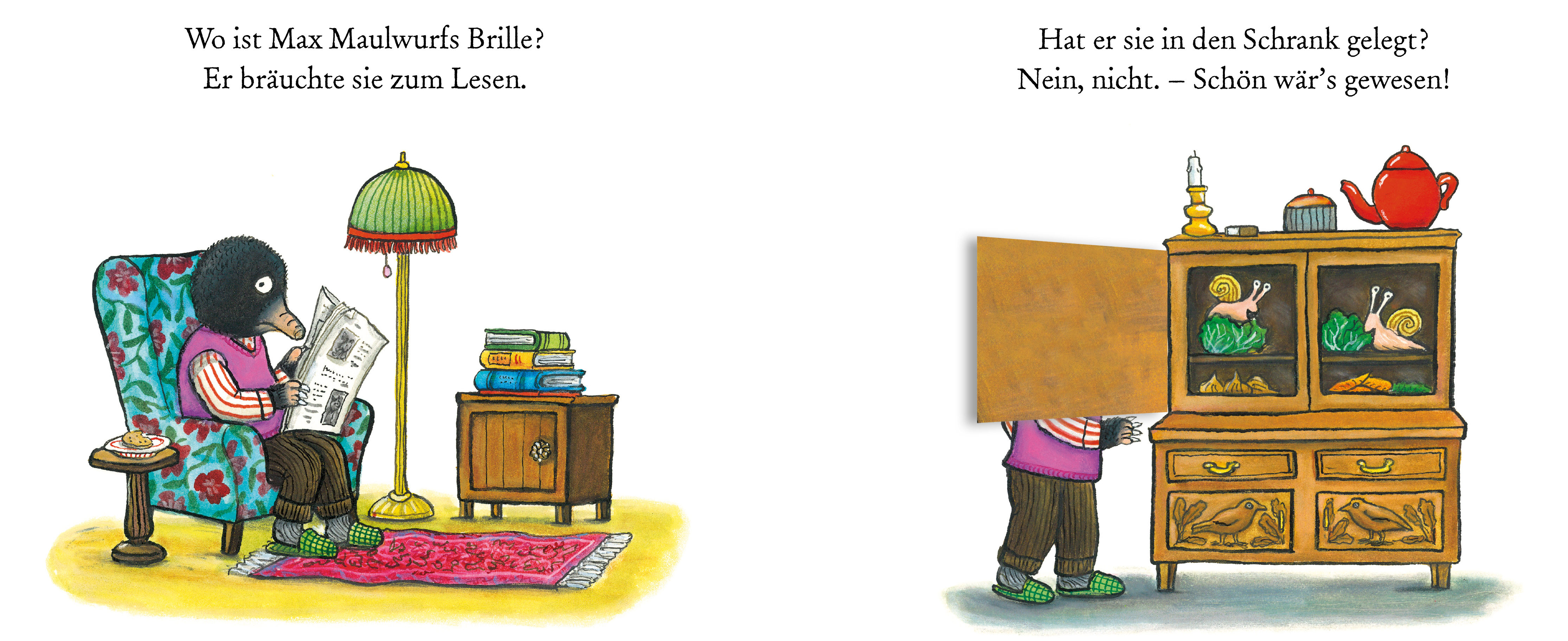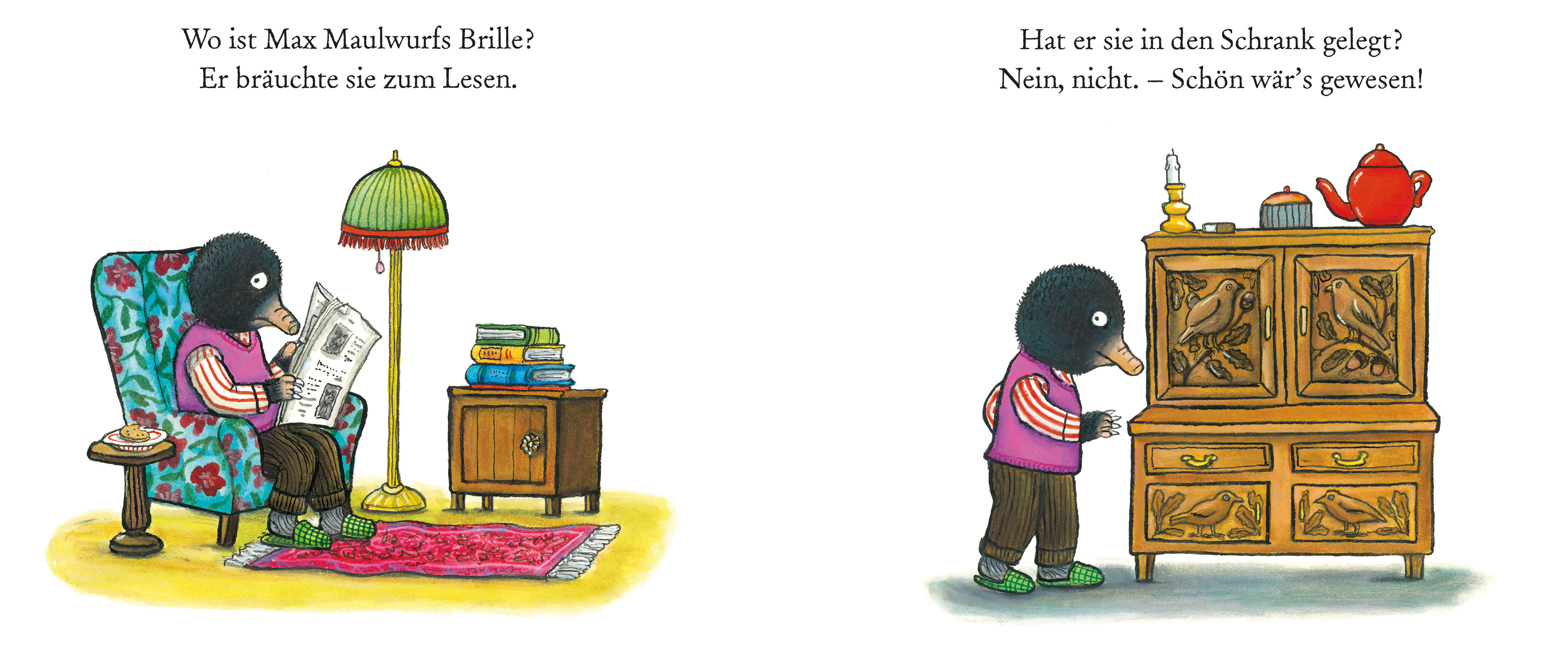 Der Maulwurf möchte Zeitung lesen und findet seine Brille nicht. Er sucht sie überall, sogar im Gartenteich! Ob er sie findet? Ein Pappbilderbuch von den Schöpfern des Grüffelo mit vielen Klappen für neugierige Kinder, die begeistert beim Suchen helfen können....
