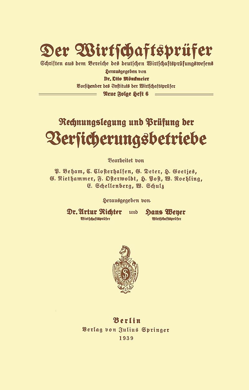 Rechnungslegung und Prüfung der Versicherungsbetriebe