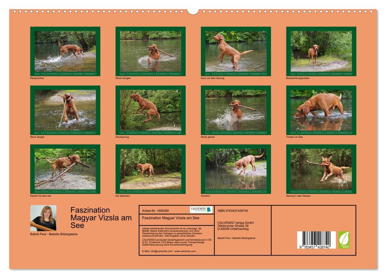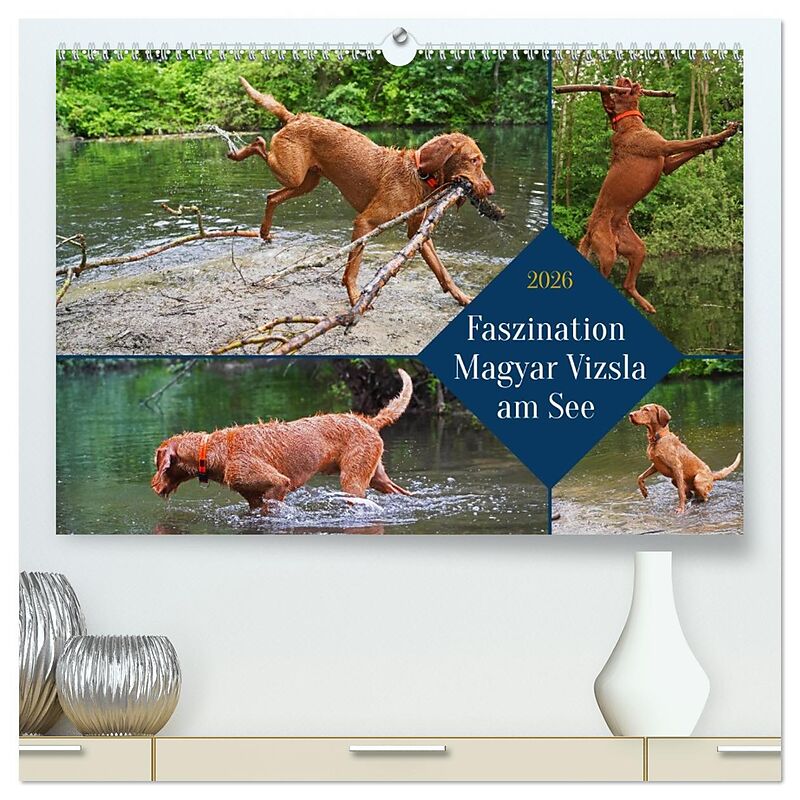 Faszination Magyar Vizsla am See (hochwertiger Premium Wandkalender 2026 DIN A2 quer), Kunstdruck in Hochglanz