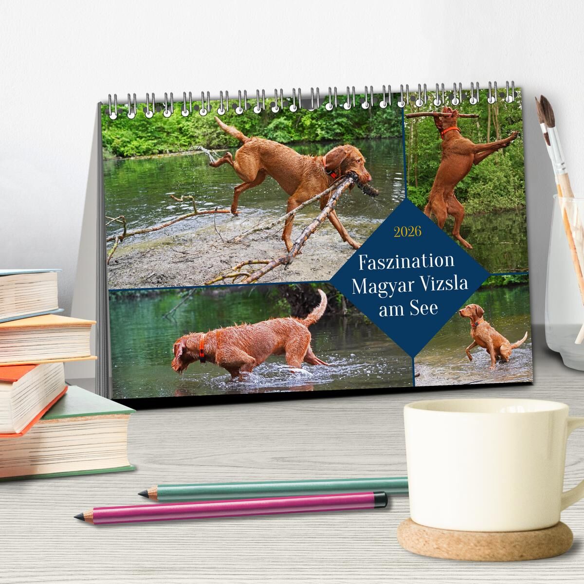 Faszination Magyar Vizsla am See (Tischkalender 2026 DIN A5 quer), CALVENDO Monatskalender