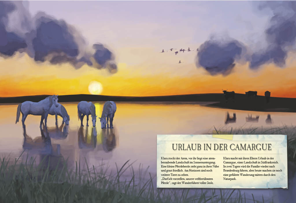 Klara macht mit ihren Eltern Sommerurlaub in der Camargue. Im Naturpark entdecken sie frei umherstreifende Pferdeherden. Schon beim ersten Blick auf die Pferde, weiß Klara: Diese Tiere will sie näher kennenlernen. Wieder zuhause in Deutschland setzt sie alles ...