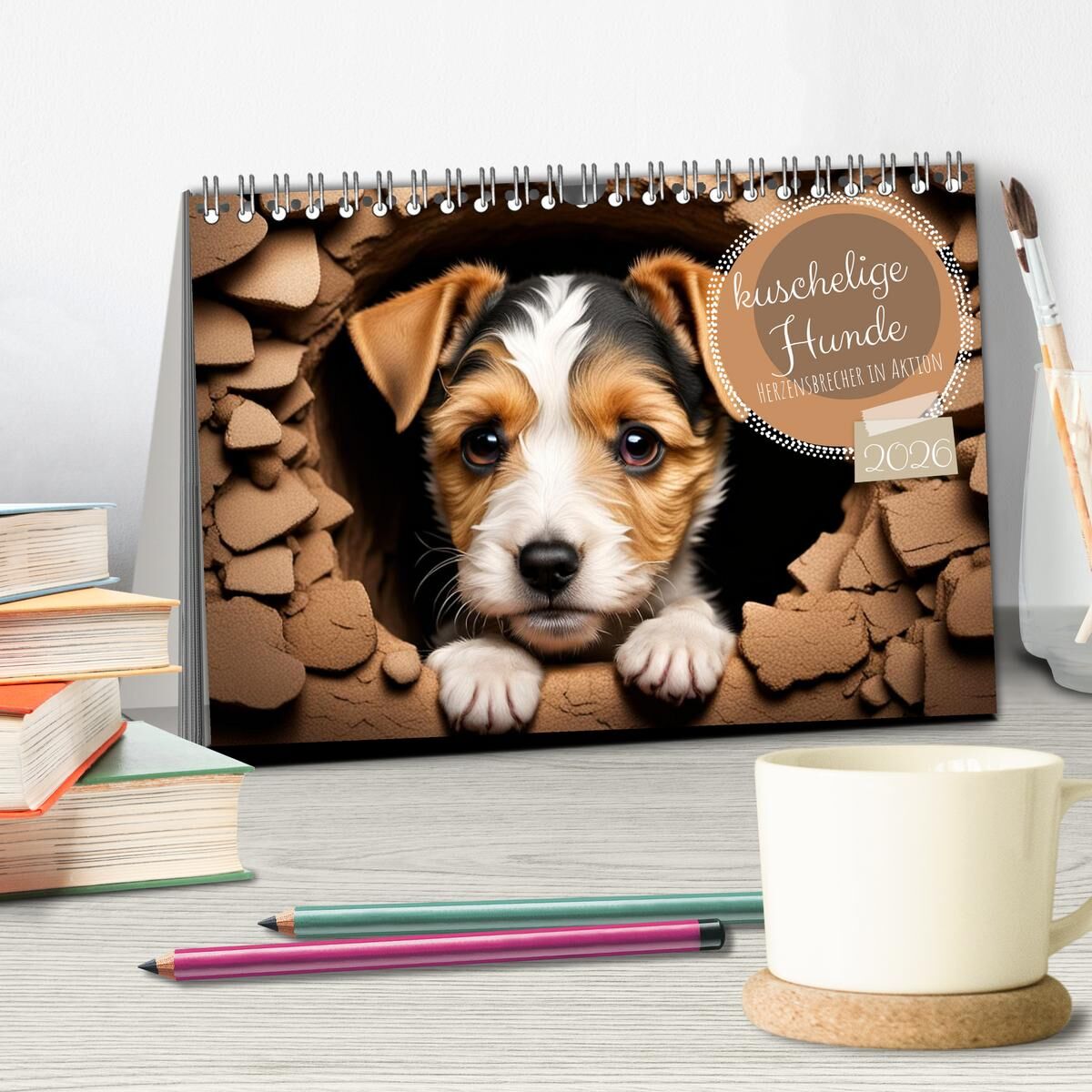 Kuschelige Hunde - kleine Herzensbrecher in Aktion (Tischkalender 2026 DIN A5 quer), CALVENDO Monatskalender