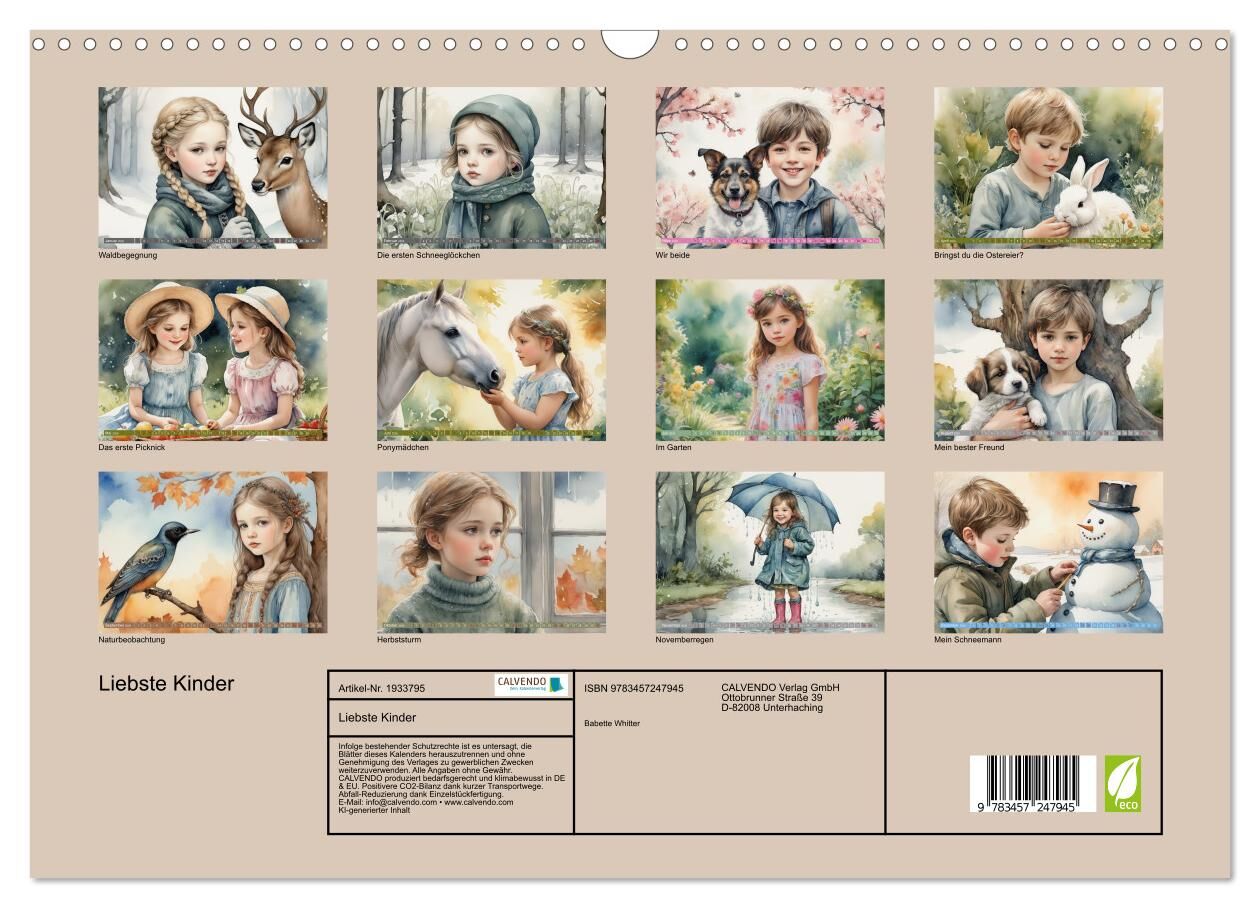 Alle lieben Kinder! Dieser künstlerische Kalender zeigt zeigt die fröhlichen Momente, mal mit mal ohne ihr Lieblingstier, in romantischen Aquarellgemälden, die mit Hilfe von KI umgesetzt wurden. Mach das Jahr zu etwas Besonderem mit unserem Kalender er ist ein...