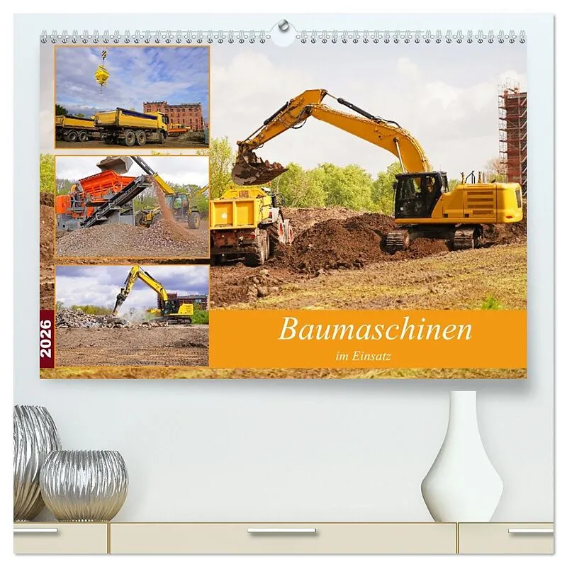 Baumaschinen im Einsatz (hochwertiger Premium Wandkalender 2026 DIN A2 quer), Kunstdruck in Hochglanz