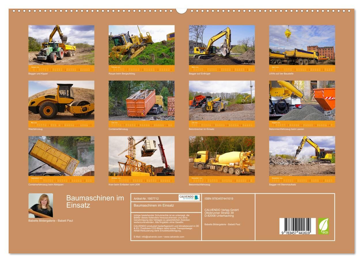 Schon als Kind faszinierten mich LKWs, Kräne und große Baumaschinen. In diesem Kalender entführe ich sie auf die Baustelle, während Baumaschinen im Einsatz sind. Ob Kran, Bagger, Walze oder Raupe, es ist alles dabei.