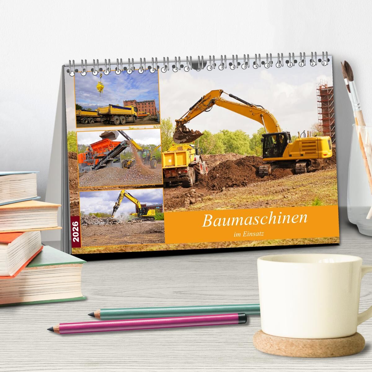 Baumaschinen im Einsatz (Tischkalender 2026 DIN A5 quer), CALVENDO Monatskalender
