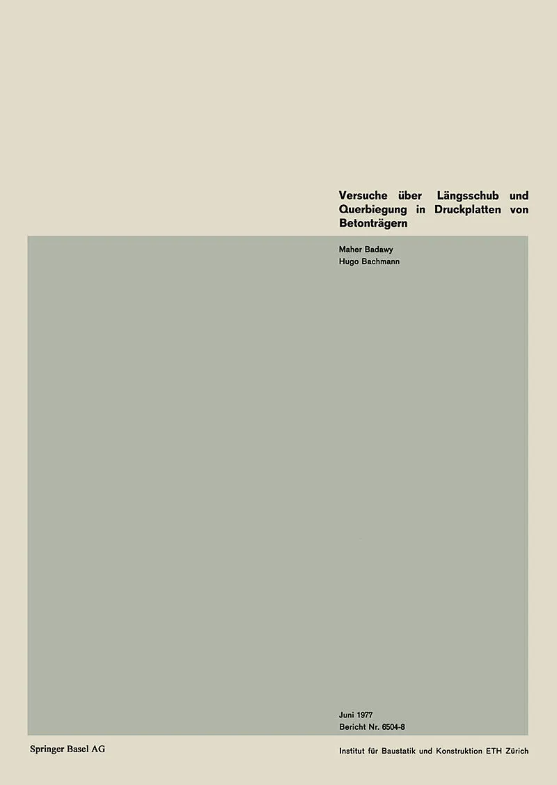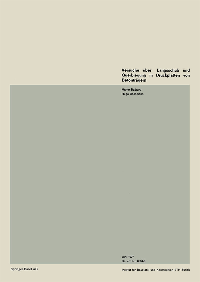InhaltVersuchsbalken.- Versuchsdurchfuehrung.- Versuchsresultate.- Vergleiche Zwischen Versuchsergebnissen und Modellen.- Ergaenzungen.- Folgerungen und Vorlaeufige Empfehlungen.- Zusammenfassung.- Resume.- Summary.- Verdankungen.