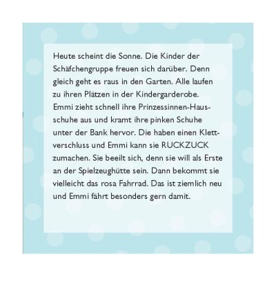 Emmi will heute schnell nach draußen, weil sie mit dem Fahrrad fahren will. Doch gerade, als sie rauslaufen will, merkt sie, dass Defne an ihrer Garderobe sitzt. Sie kann sich noch nicht alleine anziehen und spricht auch nicht so gut. Alle Erzieher sind beschä...