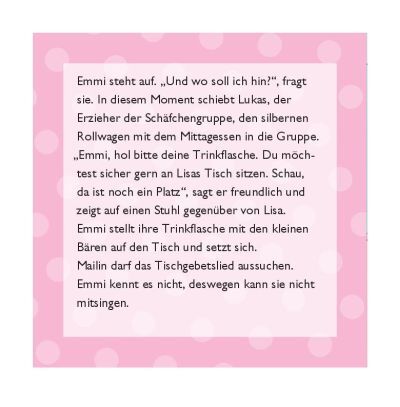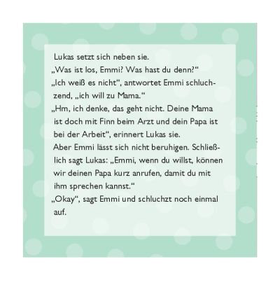 Emmi muss an diesem Tag länger im Kindergarten bleiben, weil ihre Mama mit Finn zum Arzt muss. Erst hat sie viel Spaß, aber als die anderen Kinder abgeholt werden, wird sie traurig und bekommt Angst. Sie weiß aber nicht genau, warum. Nur, dass es sich komisch ...