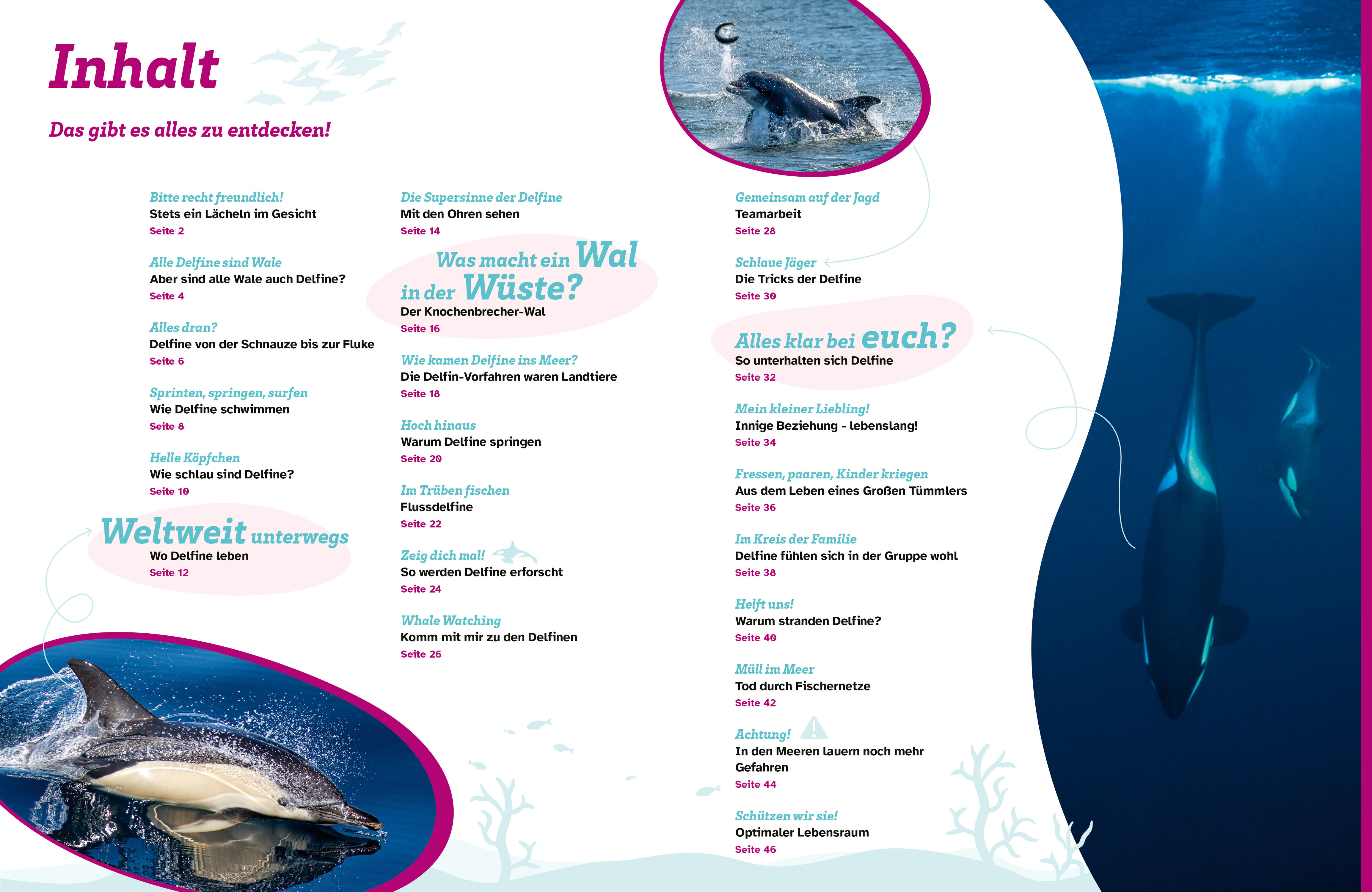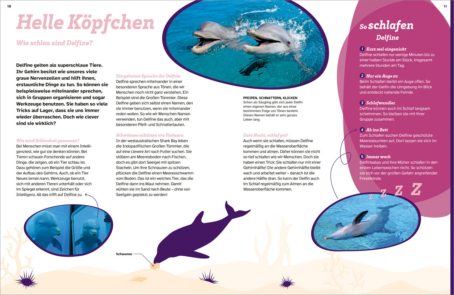Sie sind schlau, flink und sehen immer aus, als würden sie grinsen: Delfine gehören zu den Lieblingstieren der Kinder. Es gibt rund 40 Delfinarten. Ein großer Teil ist in den Ozeanen zuhause, einige schwimmen durch Flüsse. Eines haben aber alle gemeinsam - sie...