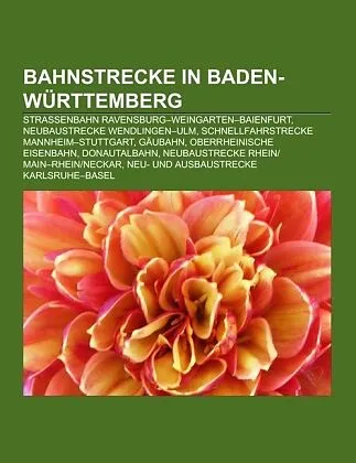 Quelle: Wikipedia. Seiten: 350. Kapitel: Straßenbahn Ravensburg Weingarten Baienfurt, Neubaustrecke Wendlingen Ulm, Schnellfahrstrecke Mannheim Stuttgart, Gäubahn, Oberrheinische Eisenbahn, Donautalbahn, Neubaustrecke Rhein/Main Rhein/Neckar, Neu- und Ausbaust...Quelle: Wikipedia. Seiten: 350. Kapitel: Straßenbahn Ravensburg Weingarten Baienfurt, Neubaustrecke Wendlingen Ulm, Schnellfahrstrecke Mannheim Stuttgart, Gäubahn, Oberrheinische Eisenbahn, Donautalbahn, Neubaustrecke Rhein/Main Rhein/Neckar, Neu- und Ausbaustrecke Karlsruhe Basel, Westbahn, Härtsfeldbahn, Untere Kochertalbahn, Hegau-Ablachtal-Bahn, Badische Hauptbahn, Murgtalbahn, Main-Neckar-Eisenbahn, Geschichte der Eisenbahn in Württemberg, Verbindungsbahn, Bahnstrecke Neckarelz Osterburken, Zentralbahn, Hardtbahn, Kraichgaubahn, Rheintalbahn, Heubergbahn, Filstalbahn, Bahnstrecke Backnang Ludwigsburg, Bahnstrecke Meckesheim Neckarelz, Bahnstrecke Mannheim Karlsruhe Basel, Wieslauftalbahn, Remsbahn, Frankenbahn, Mittelbadische Eisenbahnen, Bahnstrecke Mosbach Mudau, Öchsle, Murrbahn, Bahnstrecke Karlsruhe Mühlacker, Strohgäubahn, Katzbachbahn, Riedbahn, Ausbaustrecke/Neubaustrecke Plochingen Günzburg, Krebsbachtalbahn, Bahnstrecke Kempten Isny, Kleine Wendlinger Kurve, Südbahn, Bahnstrecke Wiesloch Meckesheim/Waldangelloch, Brenzbahn, Rheinbahn, Bruhrainbahn, Zollernalbbahn, Bahnstrecke Freiburg Colmar, Vaihinger Stadtbahn, Hohenstaufenbahn, Neckar-Alb-Bahn, Kraichtalbahn, Jagsttalbahn, Bahnstrecke Maulbronn West Maulbronn, Siebenmühlentalbahn, Bahnstrecke Appenweier Strasbourg, Bahnstrecke Nürnberg Crailsheim, Bahnstrecke Niederbiegen Weingarten, Bodensee-Trajekte, Bahnstrecke Blaufelden Langenburg, Liste der stillgelegten Eisenbahnstrecken in Baden-Württemberg, Neckartalbahn, Bahnstrecke Neckarsteinach Schönau, Industrie- und Hafenbahn Heilbronn, Bahnstrecke Turgi Koblenz Waldshut, Neubaustrecke Stuttgart Wendlingen, Bahnstrecke Leutkirch Isny, Flughafenschleife Stuttgart, Hochrheinbahn, Bahnstrecke Leutkirch Memmingen, Hohenlohebahn, Bottwartalbahn, Schönbuchbahn, Riesbahn, Maxaubahn, Kaiserstuhlbahn, Baden-Kurpfalz-Bahn, Bahnstrecke Walldürn Hardheim, Odenwaldbahn, Karlsruher Lokalbahn, Teckbahn, Schwäbische Albbahn, Taubertalbahn, Ammertalbahn, Elsenztalbahn, Allgäubahn, Killesbergbahn Stuttgart, Rankbachbahn, Geislinger Steige, Bodenseegürtelbahn, Bahnstrecke Ludwigsburg Markgröningen, Linksufrige Neckarbahn, Bahnstrecke Stuttgart-Rohr Filderstadt, Obere Jagstbahn, Bahnstrecke Steinsfurt Eppingen, Bahnstrecke Stuttgart-Möhringen Neuhausen auf den Fildern, Güterumgehungsbahn Karlsruhe, Bahnstrecke Weinheim Worms, Westliche Einführung der Riedbahn, Schusterbahn, Bahnstrecke Altshausen Schwackenreute, Federseebahn, Ermstalbahn, Zabergäubahn, Industriebahn Münster Cannstatt, Seelinie, Bahnstrecke Müllheim Mulhouse, Maintalbahn, Bahnstrecke Eglisau Neuhausen, Zahnradbahn Honau Lichtenstein, Trossinger Eisenbahn, Güterbahn Baienfurt, Kinzigtalbahn, Obere Kochertalbahn, Bahnstrecke Meckenbeuren Tettnang, Weschnitztalbahn, Bahnstrecke Balingen Rottweil, Bahnstrecke Stuttgart-Möhringen Stuttgart-Vaihingen, Voralbbahn, Gönninger Bahn, Lautertalbahn, Madonnenlandbahn, Lokalbahn Amstetten Gerstetten, Bahnstrecke Waghäusel Saalbach Graben-Neudorf, Bahnstrecke Heidelberg Speyer, Bahnstrecke Tauberbischofsheim Königheim, Tälesbahn, Obere Neckarbahn, Roßbergbahn, Neu- und Ausbaustrecke Stuttgart Augsburg, Bahnstrecke Etzwilen Konstanz, Feldbahn Rechtenstein, Bahnstrecke Amstetten Laichingen, Bahnstrecke Etzwilen Singen, Flughafenkurve Stuttgart, Industriebahn Feuerbach, Bahnstrecke Rottweil Villingen, Talgangbahn, Bahnstrecke Lohr Wertheim, Güterumgehungsbahn Freiburg, Schefflenztalbahn, Teuringertal-Bahn, Güterzuganbindung, Bahnstrecke Marba...