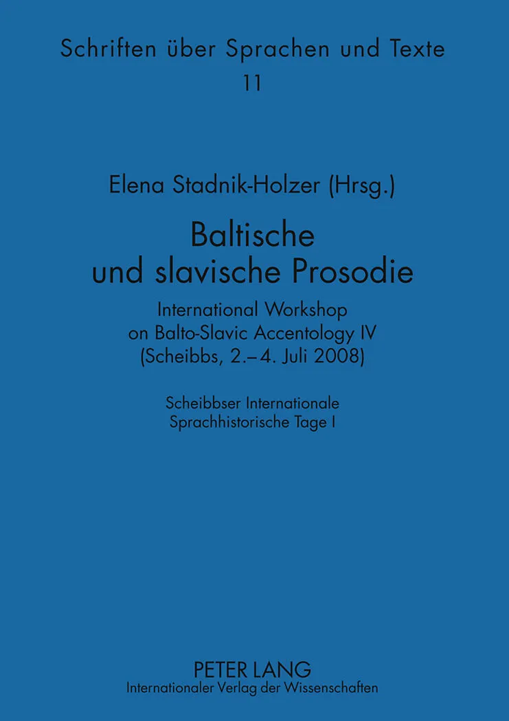 Der vierte International Workshop on Balto-Slavic Accentology wurde 2008 in Scheibbs (Niederösterreich) abgehalten und ist zugleich das erste Symposium mit der Bezeichnung Scheibbser Internationale Sprachhistorische Tage . Dieser Band enthält die Beiträge zu d...