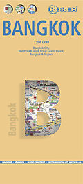 Our laminated and folded Borch Map of Bangkok in the 12th edition contains: Bangkok City 1:14 000, Wat Phra Kaeo & Royal Grand Palace 1:6 000, Bangkok & Region 1:100 000, the public transport system, an administrative map of Thailand with time zones an...