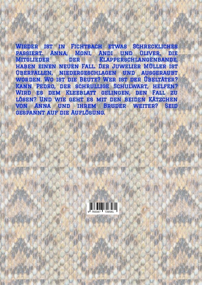 Wieder ist in Fichtbach etwas Schreckliches passiert. Anna, Moni, Andi und Oliver, die Mitglieder der Klapperschlangenbande, haben einen neuen Fall. Der Juwelier Müller ist überfallen, niedergeschlagen und ausgeraubt worden. Wo ist die Beute? Wer ist der Übelt...