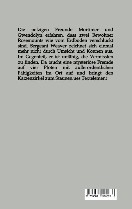 Dies ist der dritte Teil meiner Gwendolyn & Mortimer Trilogie. Die pelzigen Freunde Mortimer und Gwendolyn erfahren, dass zwei Bewohner Rosemounts wie vom Erdboden verschluckt sind. Sergeant Weaver zeichnet sich einmal mehr nicht durch Umsicht und Können a...