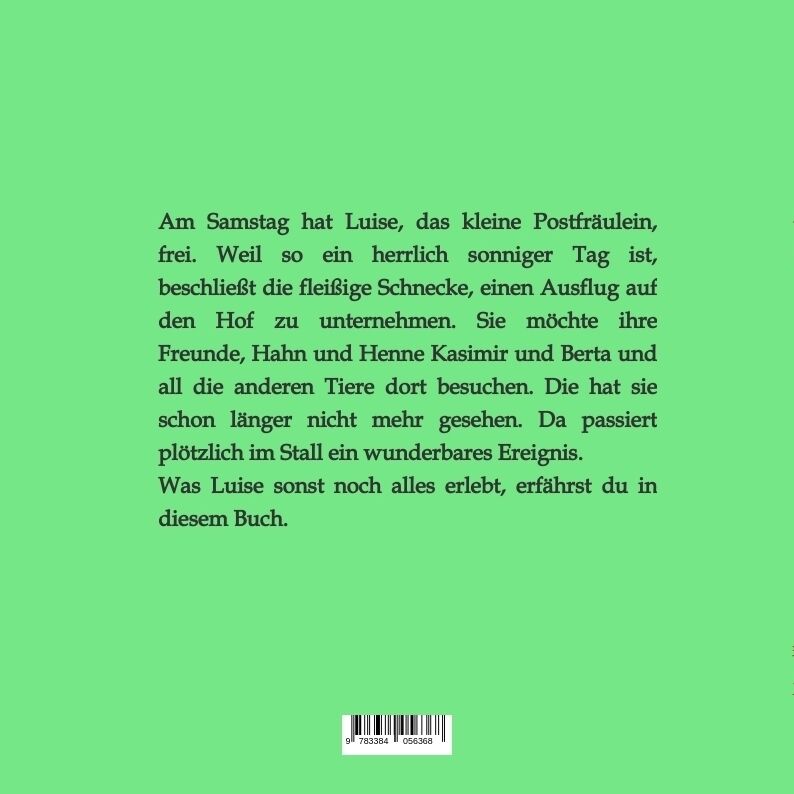 Dies ist mein 3. Luise-Buch. Bei der kleinen Luise handelt es sich um ein Schnirkelschneckenmädchen, das bei der Schneckenpost arbeitet. Dabei erlebt sie die aufregendsten Sachen. In diesem Buch hat sie jedoch frei und macht einen Ausflug: Am Samstag hat Luise...
