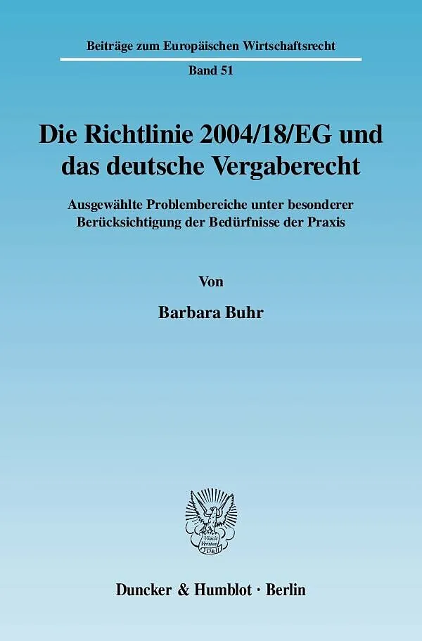 Die Verfasserin untersucht die Umsetzung der klassischen Vergabekoordinierungsrichtlinie 2004/18/EG in das deutsche Vergaberecht. Barbara Buhr setzt sich insbesondere mit den Voraussetzungen einer Ausschreibungspflicht, Ausnahmen vom Anwendungsbereich des Verg...