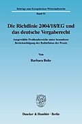 Die Verfasserin untersucht die Umsetzung der klassischen Vergabekoordinierungsrichtlinie 2004/18/EG in das deutsche Vergaberecht. Barbara Buhr setzt sich insbesondere mit den Voraussetzungen einer Ausschreibungspflicht, Ausnahmen vom Anwendungsbereich des Verg...