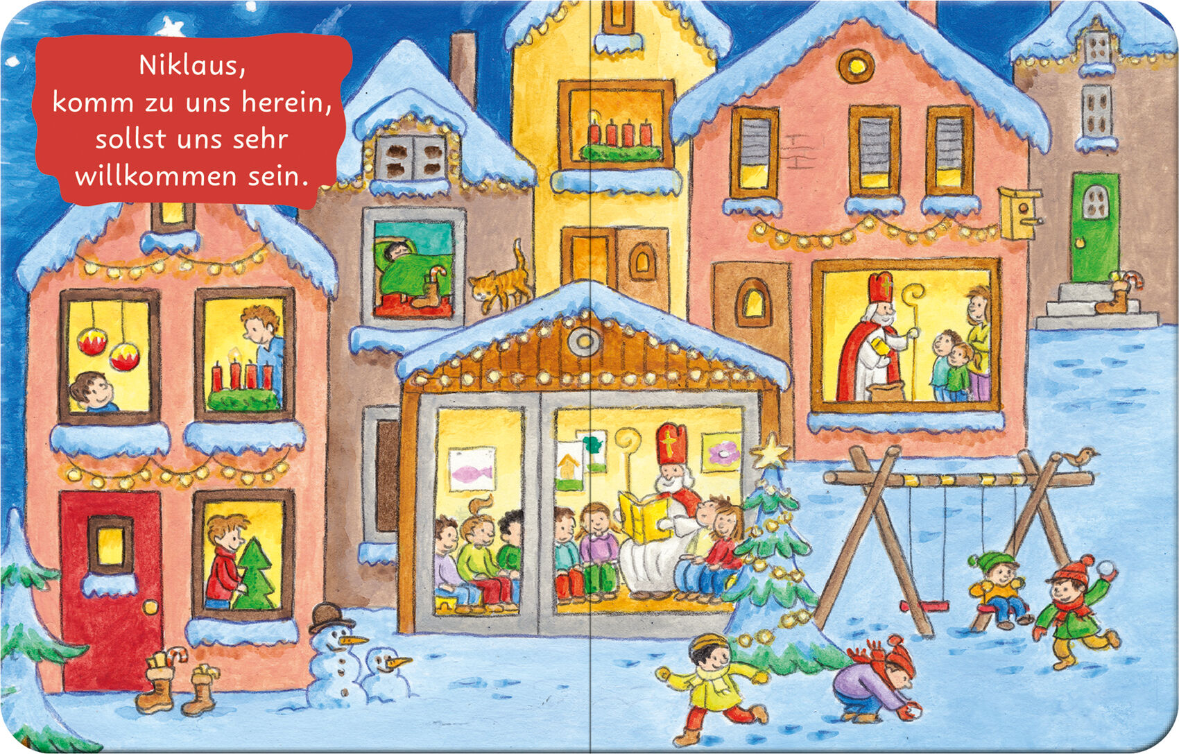 Es wimmelt am Nikolaustag Was hat der Nikolaus vor die Tür gestellt? Wem hilft der heilige Mann mit Goldkugeln? Und wer beobachtet den Nikolaus im verschneiten Winterwald? Kinder ab 2 Jahren lädt dieses Pappbilderbuch zu einer Reise in die wimmelige Welt des h...