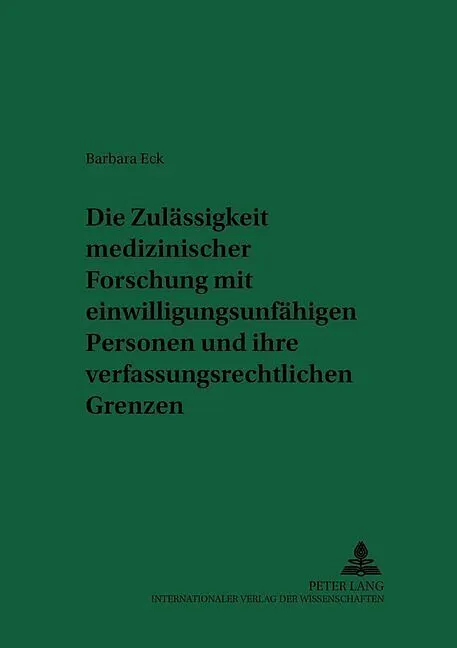 Die Zulässigkeit medizinischer Forschung mit einwilligungsunfähigen Personen und ihre verfassungsrechtlichen Grenzen