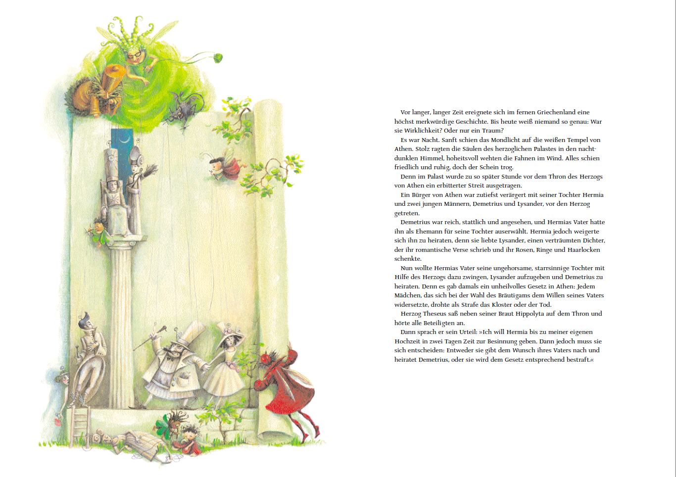Vier unglücklich Verliebte irren in einer Mittsommernacht durch einen Wald nahe bei Athen. Sie ahnen nicht, dass sie sich im Zauberreich des Elfenkönigs Oberon und seiner stolzen Königin Titania befinden, in dem es von Feen und Naturgeistern nur so wimmelt. Un...