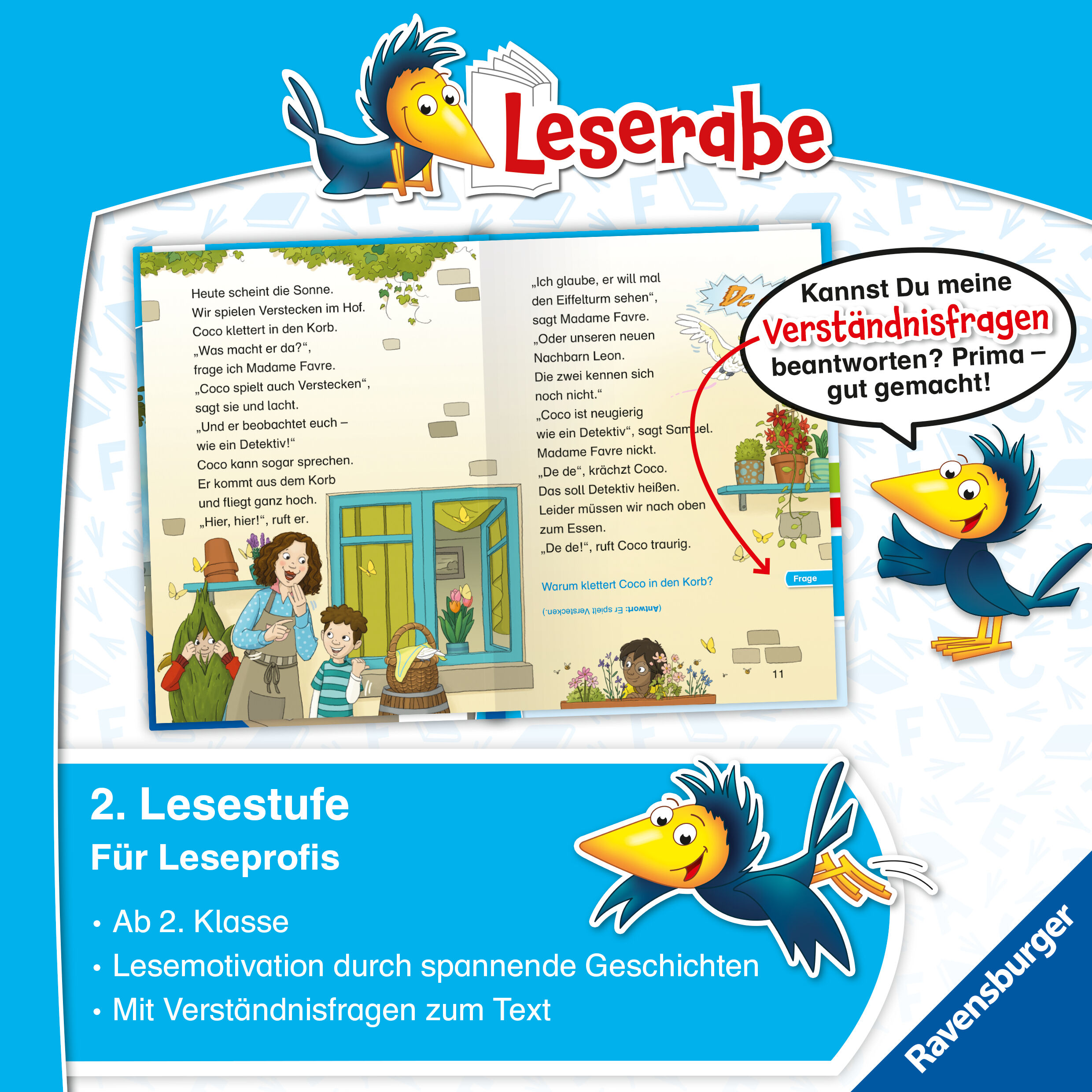 Lesen lernen wie im Flug! Noah und seine Freunde sind in Paris einem spannenden Fall auf der Spur: Kakadu Coco ist entführt worden! Schnell nehmen die Detektive die Verfolgung auf und folgen dem Verdächtigen vom Louvre, vorbei am Triumphbogen bis zum Eiffeltur...