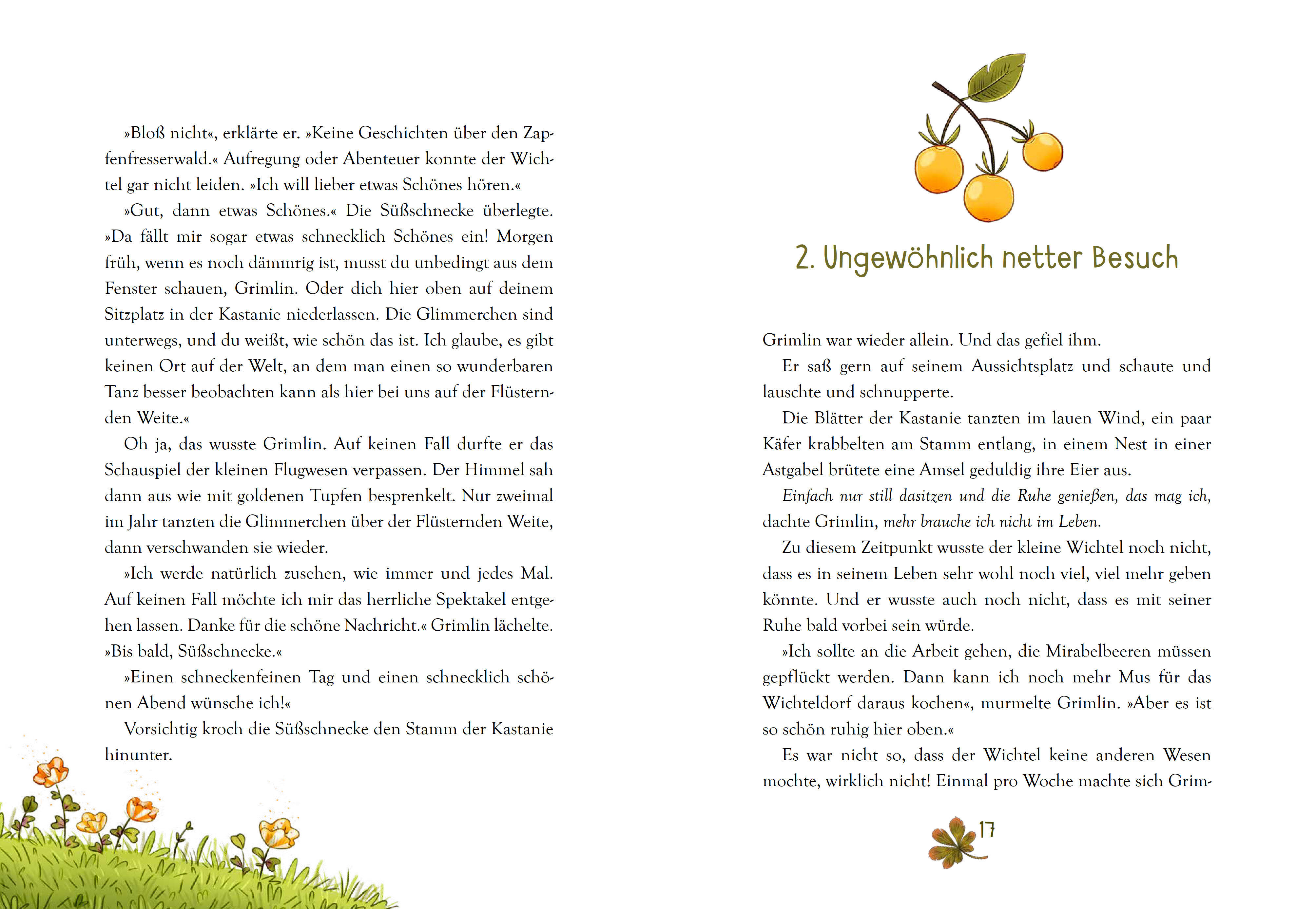 Abenteuer? Gesellschaft? Nein, das ist nichts für Grimlin. Der brummelige Wichtel hat am liebsten seine Ruhe, vor allem wenn er morgens ein Tässchen Wurzeltee auf seinem Lieblingsplatz hoch oben in der alten Kastanie genießt. Das ändert sich, als dort ein Vog...