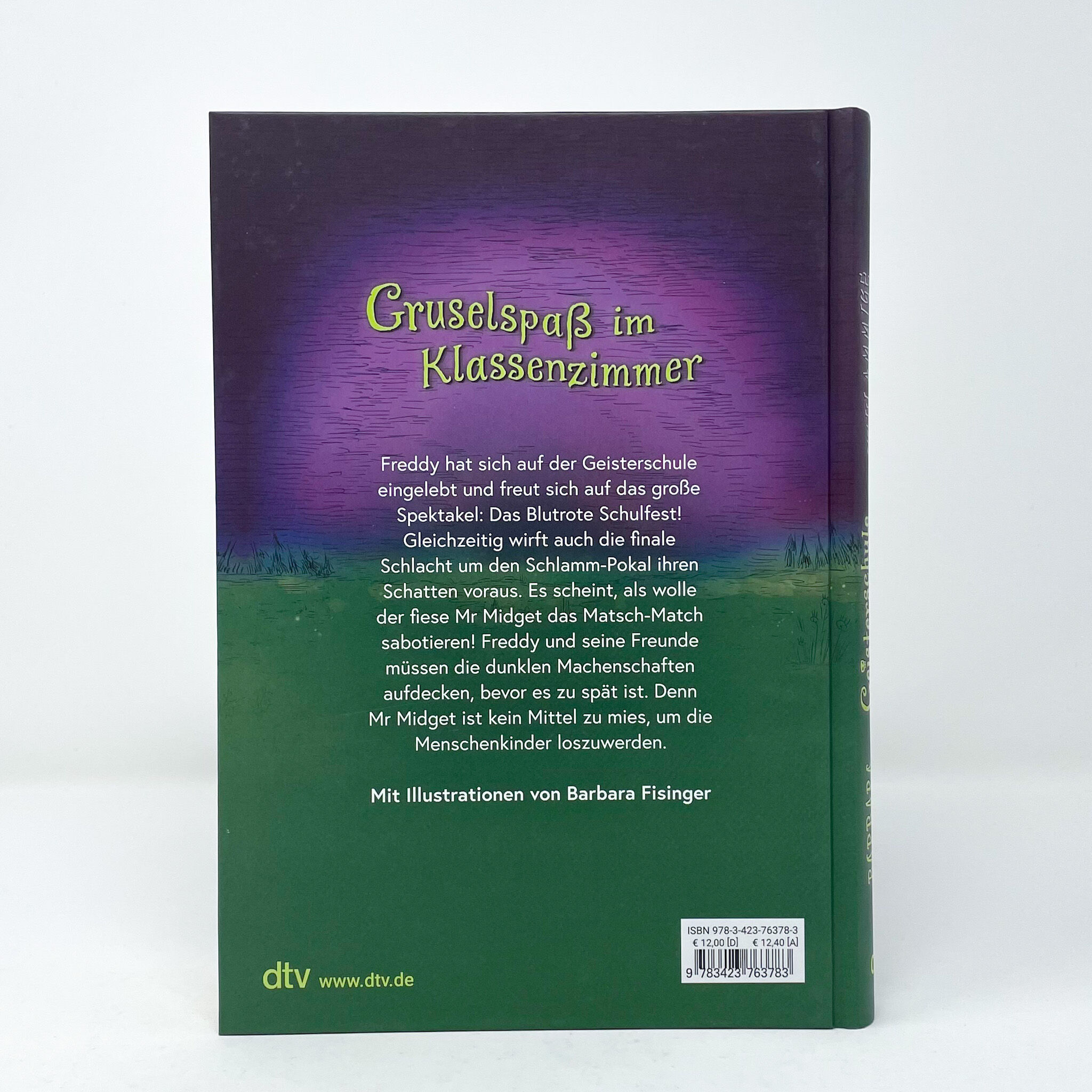 Ein großes Spektakel auf der Geisterschule steht vor der Tür: das Blutrote Schulfest! Freddy und seine Freunde stecken zwischen den wildesten Kostümen und der großen Schlacht um den Schlamm-Pokal in einem gefährlichen Abenteuer ... Blutsauger auf Burg Blauzah...