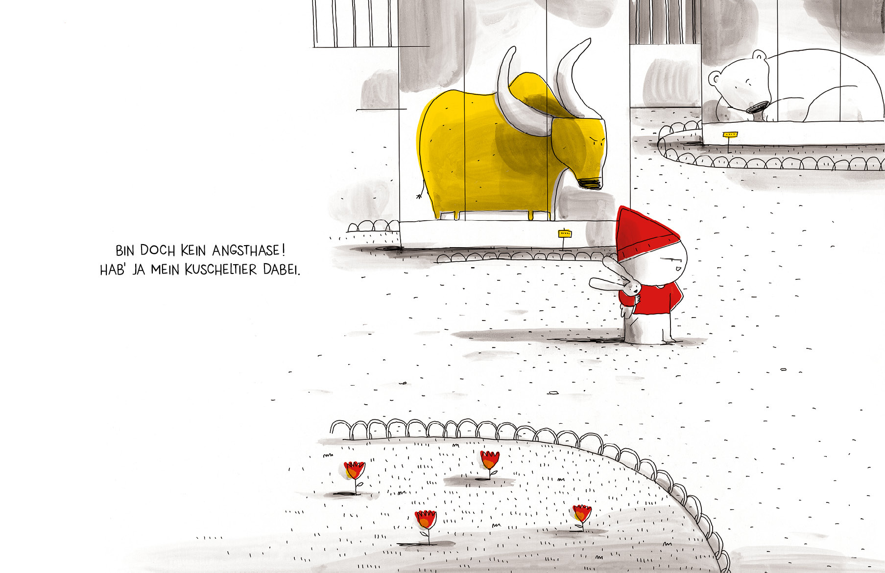 Nichts kann dem kleinen Helden in dieser Geschichte Angst einjagen. Egal, ob er sich im Supermarkt verirrt, ob er Auge in Auge einem Löwen (im Tierpark) gegenuber steht oder ob er in seinem Bett liegt und ganz allein einschlafen soll. Warum nur ist er so mutig...