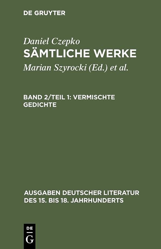 Keine ausführliche Beschreibung für "Vermischte Gedichte" verfügbar. Die Reihe Ausgaben Deutscher Literatur des VV. bis XVIII. Jahrhunderts" startete 1967 mit dem Ziel, zur besseren Textkenntnis der vernachlässigten mittleren deutschen und neulateini...