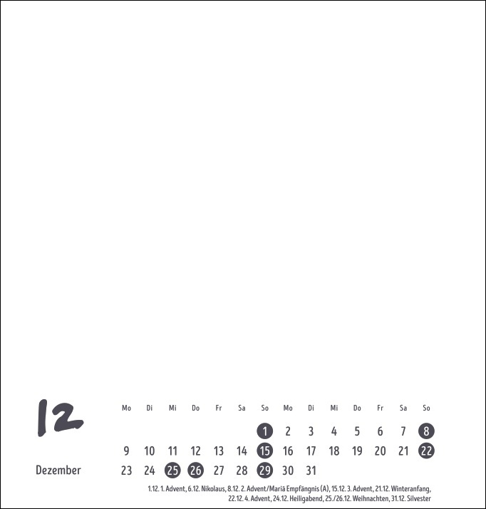 Bastelkalender 2024 weiß mittel. Blanko-Kalender zum Basteln mit extra Titelblatt für eine persönliche Gestaltung. Foto- und Bastelkalender 2024. Format 21 x 22 cm.