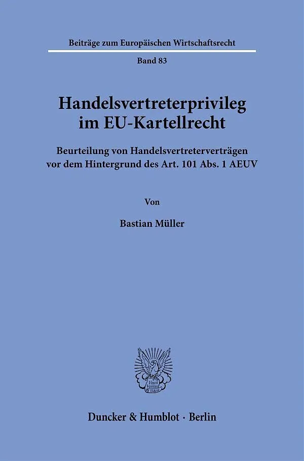 Die vorliegende Arbeit geht der Frage nach, ob und welche Vereinbarungen in Handelsvertreterverträgen unter welchen Voraussetzungen nicht dem Art. 101 AEUV unterfallen (sog. Handelsvertreterprivileg). Dabei wird ein Konzept zur kartellrechtlichen Beurteilung v...