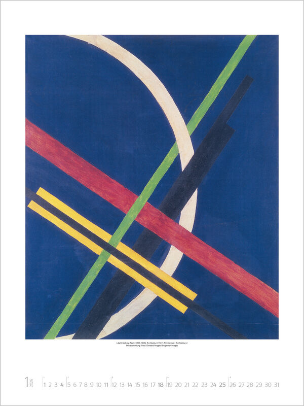 Klarheit, Sachlichkeit und Zweckmäßigkeit sowie das Zusammenwirken von Kunst und Industrie im Sinn umfassender Lebensgestaltung waren die Maximen dieses revolutionär neuen Kunstverständnisses. Der Kalender zeigt eine Auswahl der bekanntesten Werke großer Bauh...