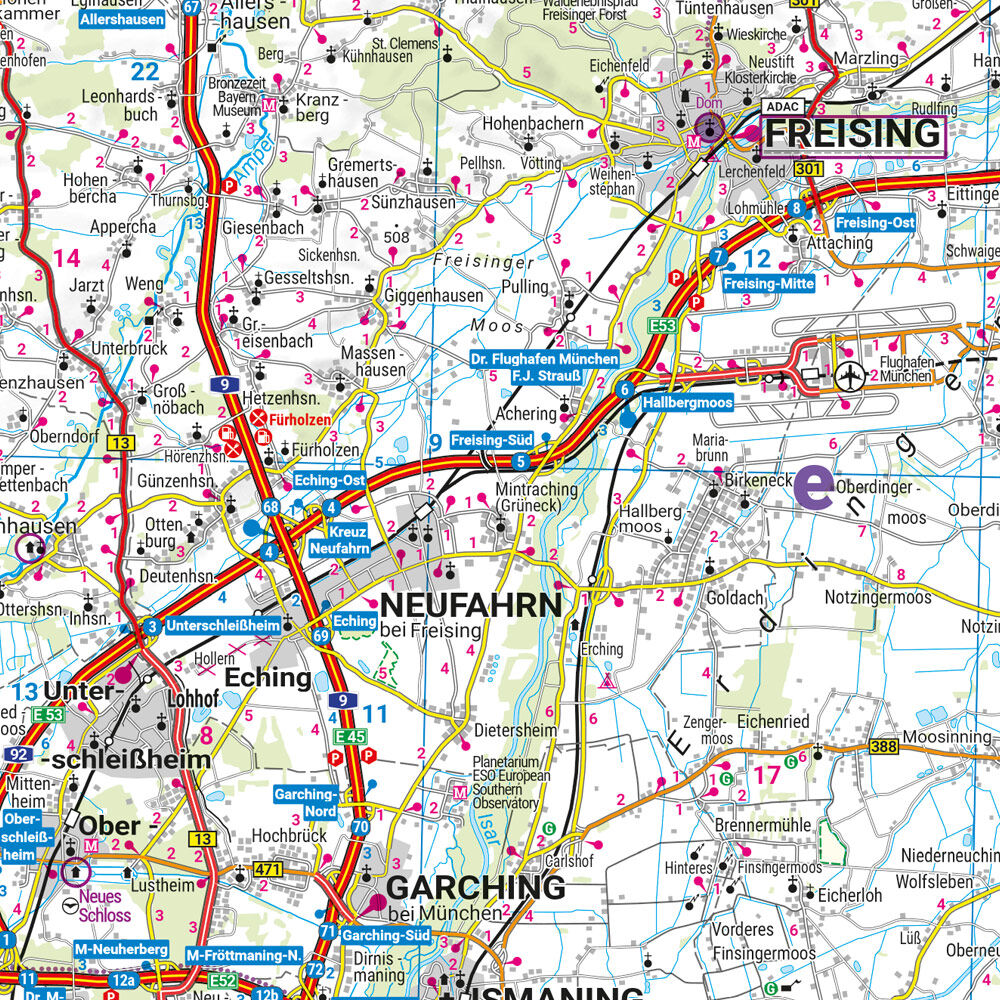 Mit der Straßenkarte Bayern Süd im Maßstab 1:200.000 finden sich Aktivurlauber die mit dem Auto, Motorrad oder Wohnwagen in Deutschland unterwegs sind bestens zurecht. Das weit verzweigte Straßennetz ist exakt abgebildet, Entfernungen und touristische Ausflugs...