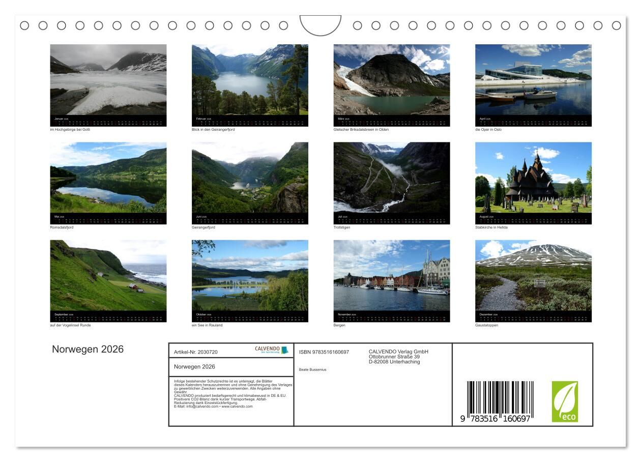 Norwegen 2026 (Wandkalender 2026 DIN A4 quer), CALVENDO Monatskalender
