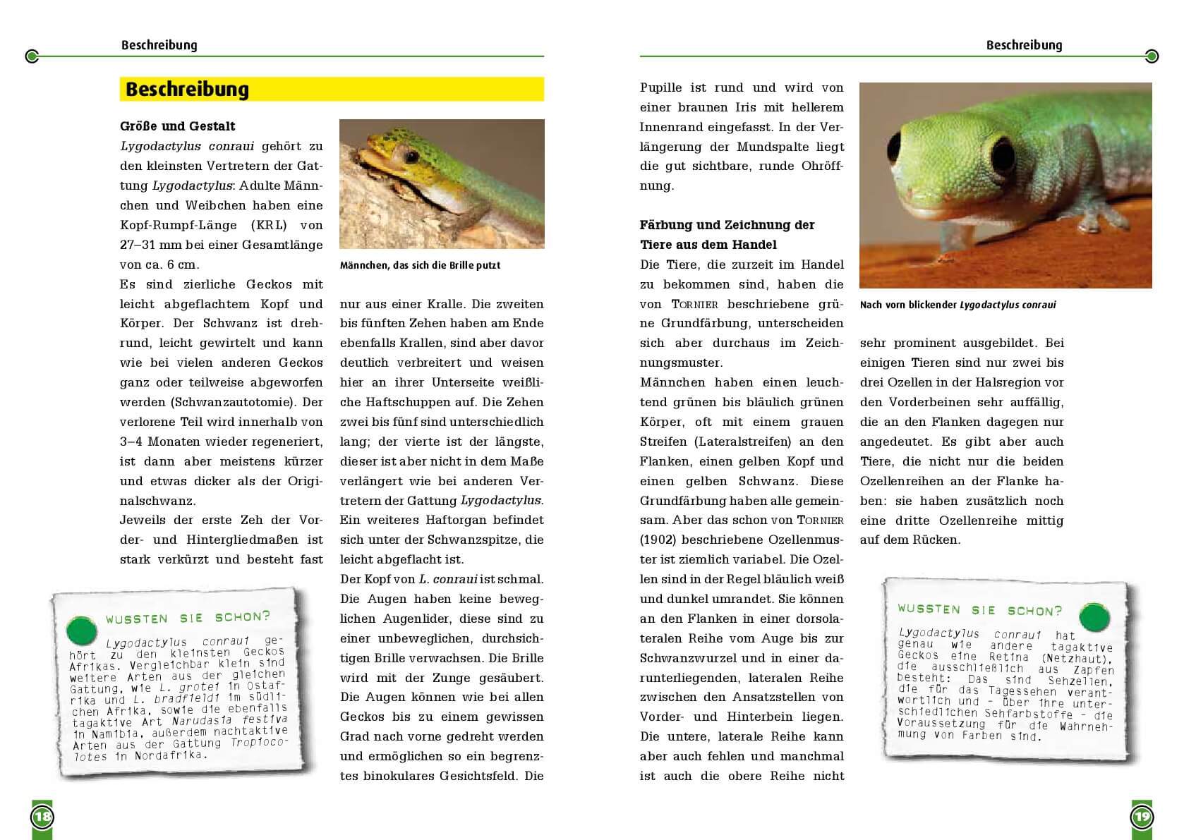 Die tagaktiven Zwerggeckos der Gattung Lygodactylus sind in den letzten Jahren verstärkt in das terraristische Interesse gerückt. Neben dem Himmelblauen Zwerg-Taggecko, Lygodactylus williamsi, ist es vor allem Conraus Zwergtaggecko, der mit seiner wunderschöne...