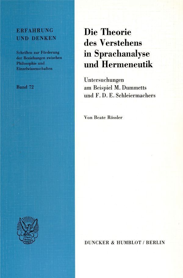 Die Theorie des Verstehens in Sprachanalyse und Hermeneutik.