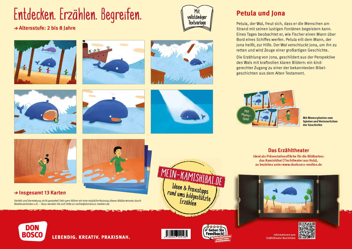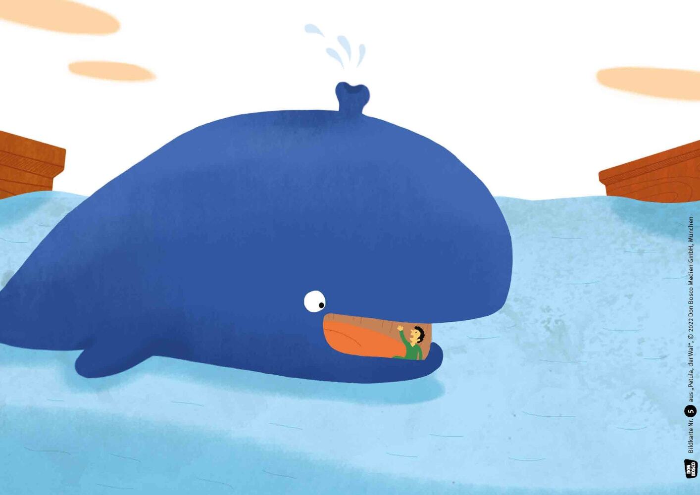 Jona wird bei einem Sturm von dem Wal Petula verschluckt. Die beliebte Bibelgeschichte erzählt aus Wal-Perspektive. Für Kita, Schule & Gemeinde. Mit dem Kamishibai die Bibel entdecken: Die Jona-Geschichte aus Wal-Perspektive! Gott gibt Jona einen gefährlic...