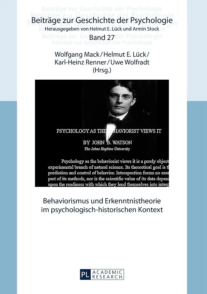 Das Buch enthält Beiträge zur Geschichte der Psychologie und zur Theoretischen Psychologie. Das Vermächtnis der Geschichte des Behaviorismus wird reflektiert, Beiträge zu historischen Persönlichkeiten und Werken werden präsentiert (u.a. K. Bühler, E. Rothacker...