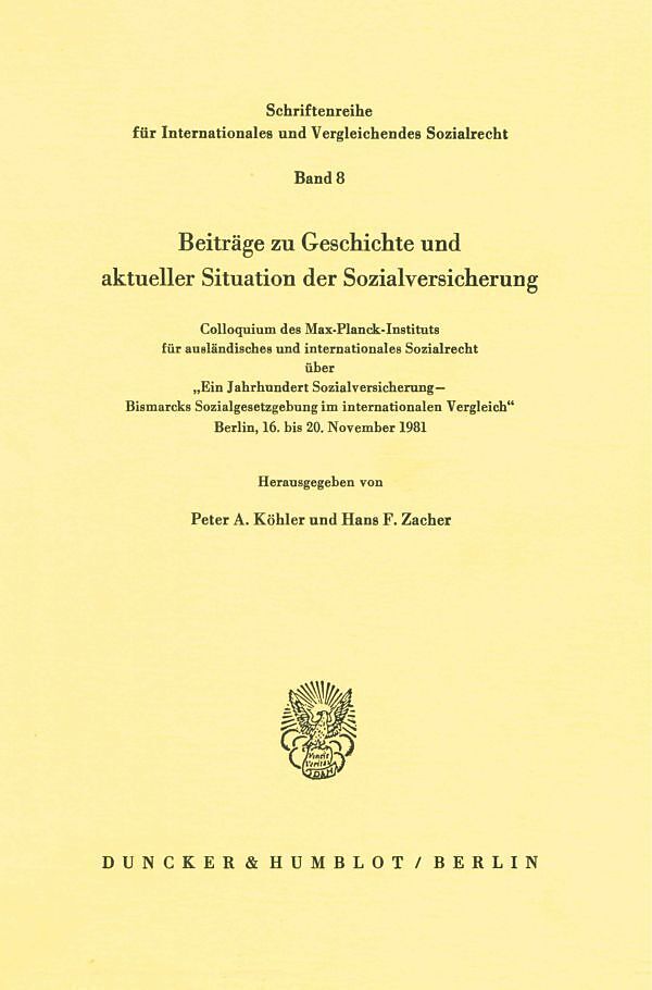 Autorentext Hans F. Zacher is Director emeritus of the Max-Planck-Institute for Foreign and International Social Law, Munich. He is a former President of the Max-Planck-Society and has been awarded honorary doctorates and prizes. He is also Honorary President ...