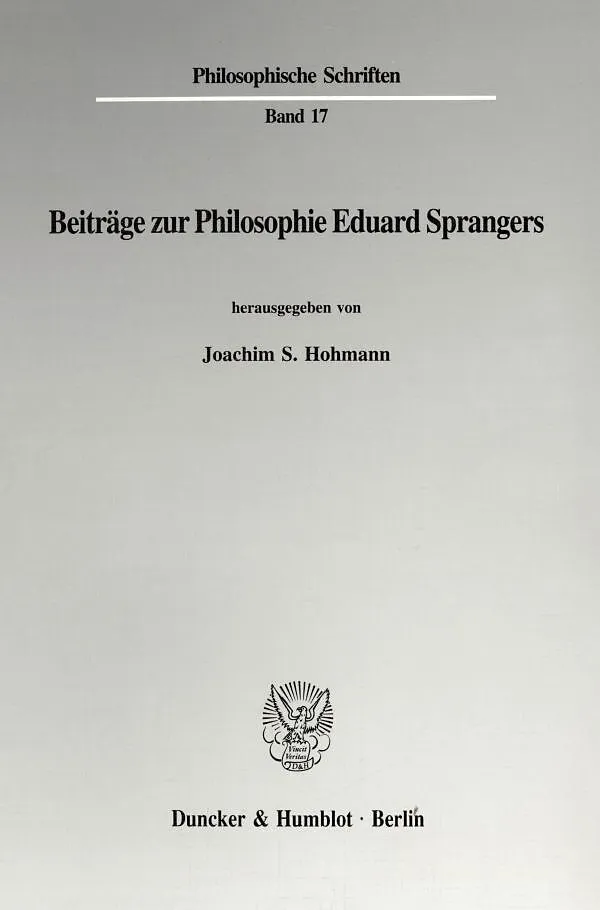 Eduard Spranger, einer der Wegbereiter und Hauptvertreter der geisteswissenschaftlichen Pädagogik in Deutschland, verstand sich zurecht in erster Linie als Philosoph. Philosophie war für ihn der Schlüssel zur Pädagogik und Psychologie - Disziplinen, die er wäh...