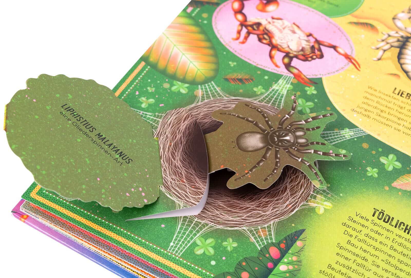 Von glänzenden, leuchtenden Käfern über riesige Schmetterlinge bis hin zu Spinnen: Dieses hochwertige Buch mit seiner eindrucksvollen Papiertechnik zeigt kunstvoll gestaltete dreidimensionale Pop-ups und Klappen und gewährt so einen faszinierenden Blick in di...