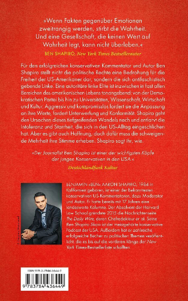 Mit einem Vorwort von Jan Fleischhauer. Nicht die politische Rechte ist das Problem: in seinem New York Times Bestseller deckt Ben Shapiro auf, die wie autoritäre Linke Amerikas Freiheit bedroht. Der bekannte Autor und politische Kommentator geht den Ursachen ...